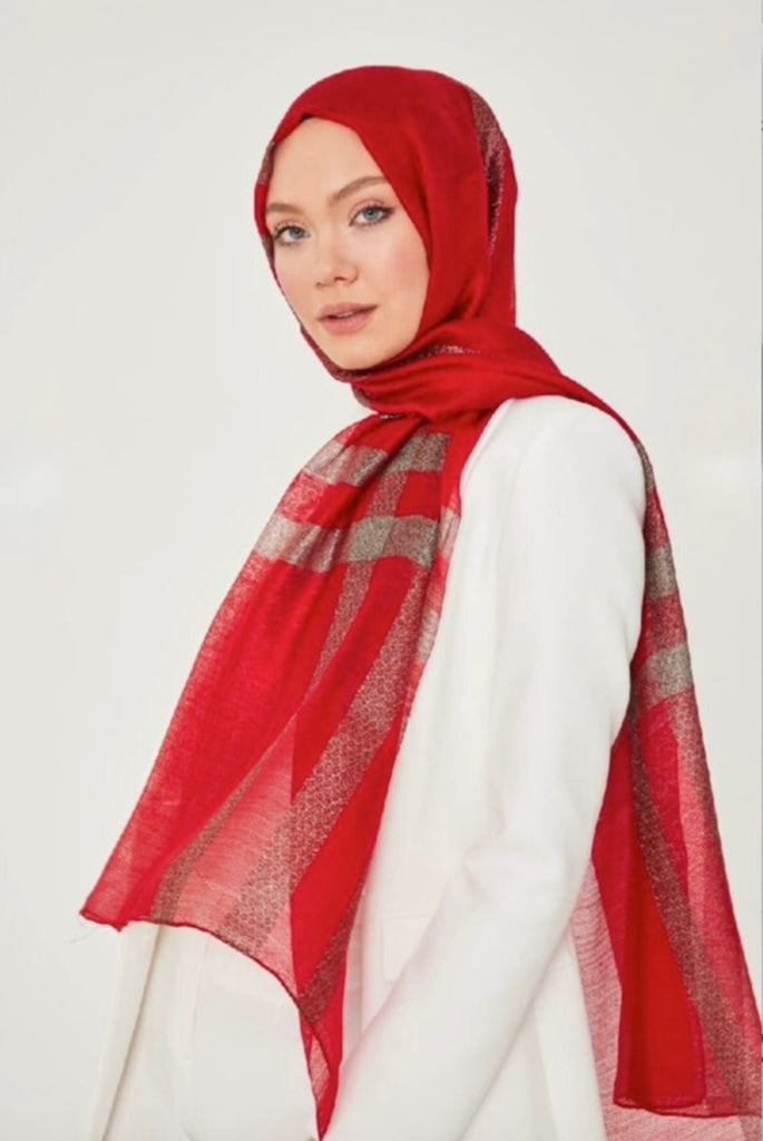 These beautiful shimmer striped scarf will be your favourite one for your special events or nights. You must have this soft and stylish hijab to complete your outfits.